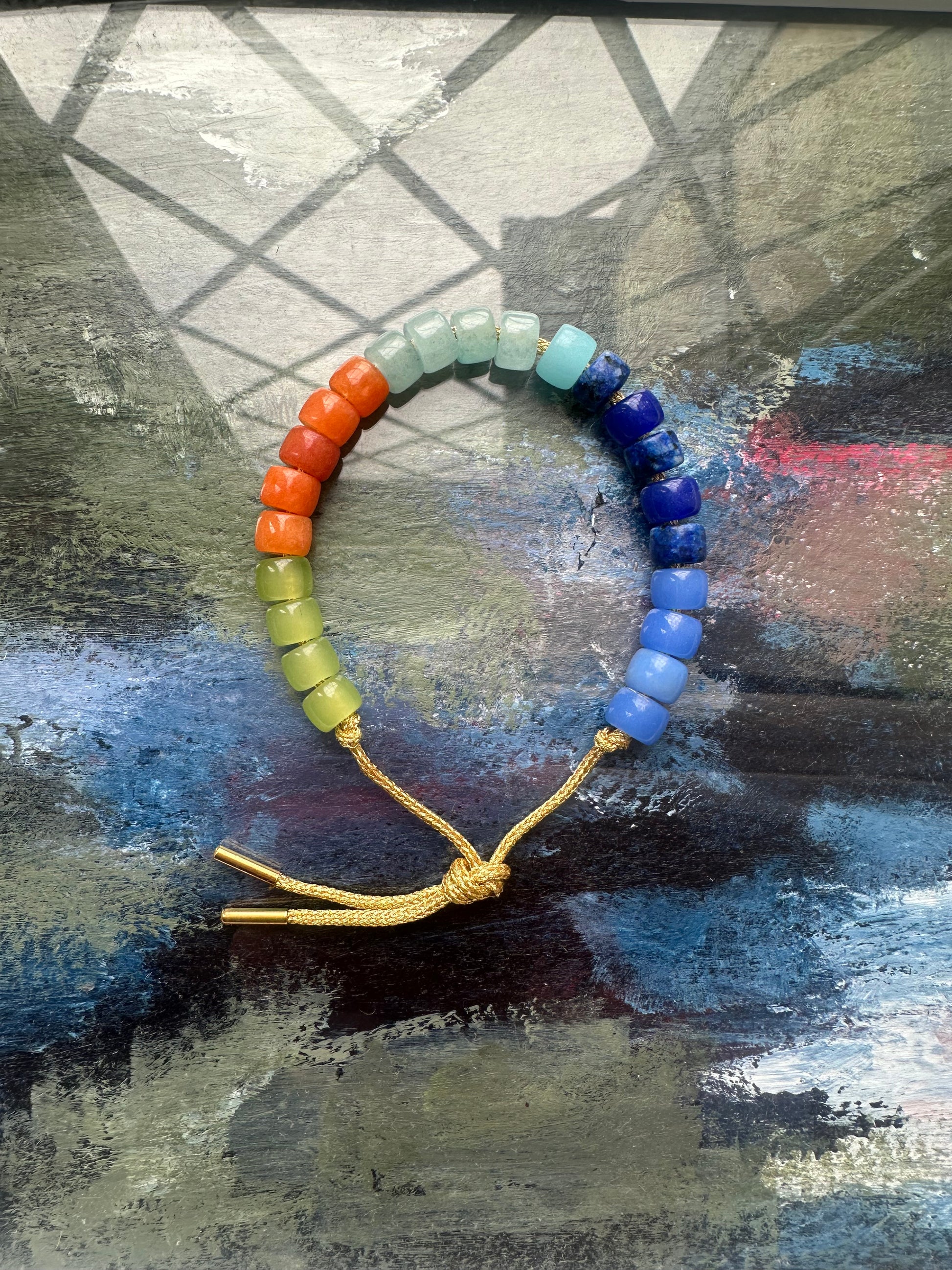 The bracelet comes on a hand tie cord and is fully adjustable.