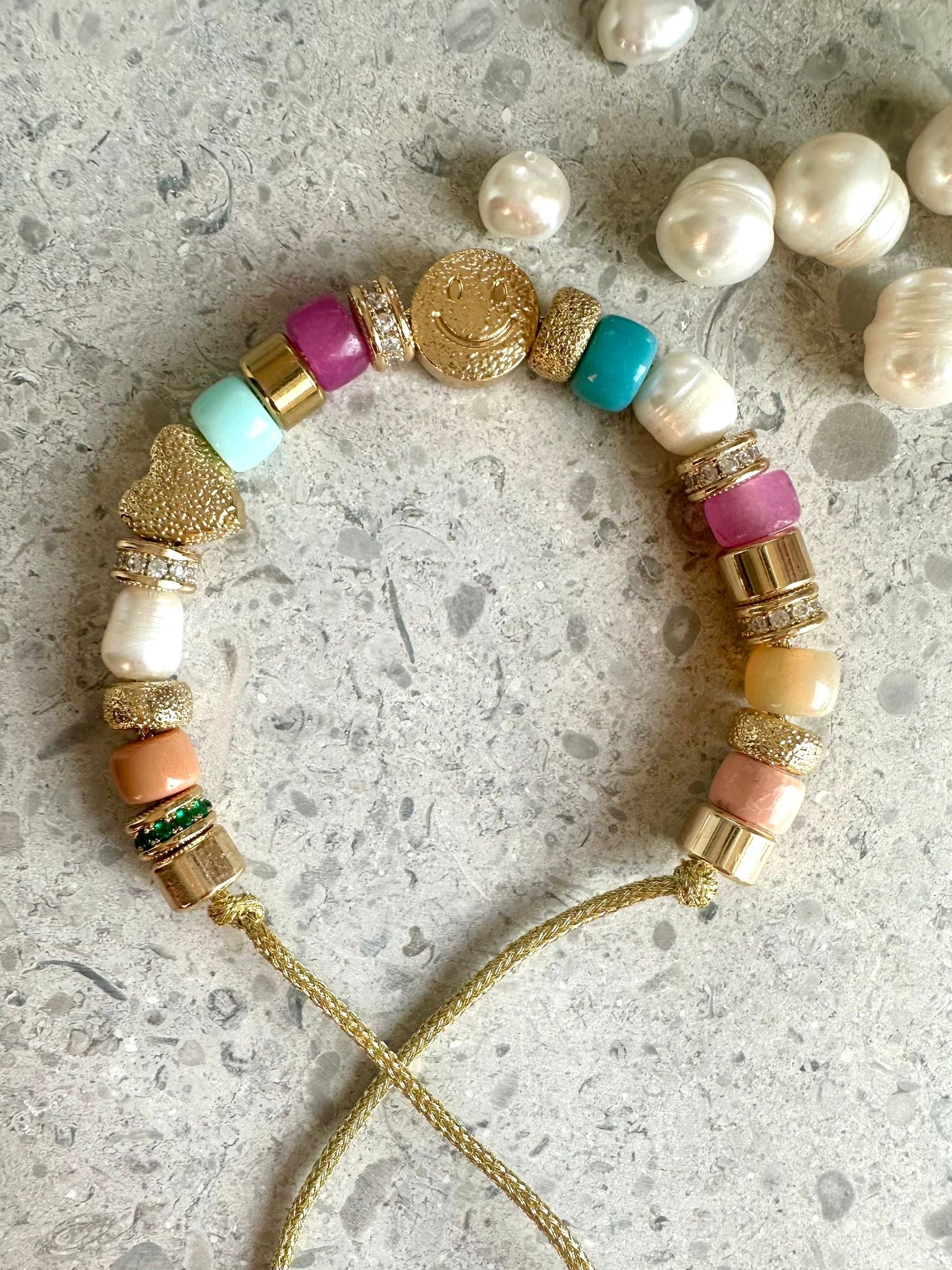 Our Beautiful Custom bracelet with your choice of our collection of gold filled charms, spacers or freshwater pearls.